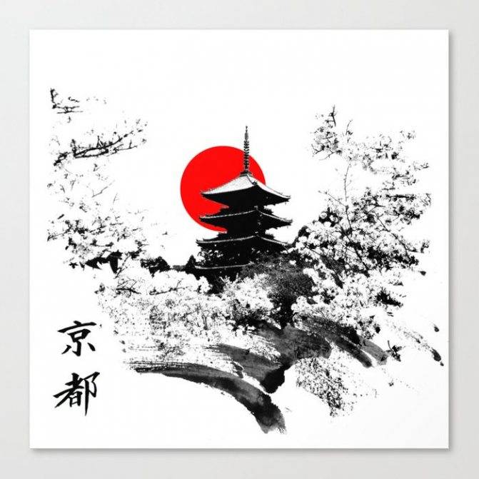 Рисунки в ярких цветах эффектно выглядят, символизируют порядок мироздания, стремление к честности и справедливости. Стиль Япония подразумевает большую площадь нанесения. Изображения выполняют на руках, спине, груди. На руке часто заказывают рукав. Пагода на фоне горного пейзажа красиво смотрится сбоку на груди или спине.