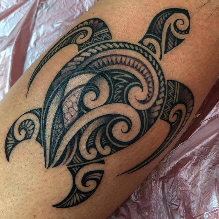 Одним из почитаемых образов в татуировке полинезийцев является черепаха, которая с древних времен олицетворяет защиту. Тот самый энергетический панцирь, который не даст проникнуть злым силам в судьбу человека. Образ черепахи способен также принести здоровье, долголетие, а также крепость в семейные узы.
