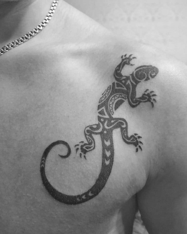 Несмотря на неказистость этого юркого животного искусство нанесения тату превращает его изображение на теле в завораживающие произведения. Ящерица призвана открыть высший смысл жизни, помогает развивать интуицию и открывает у владельца дар провидения, чаще всего такие изображения наносились на тела жрецов и служителей культов.