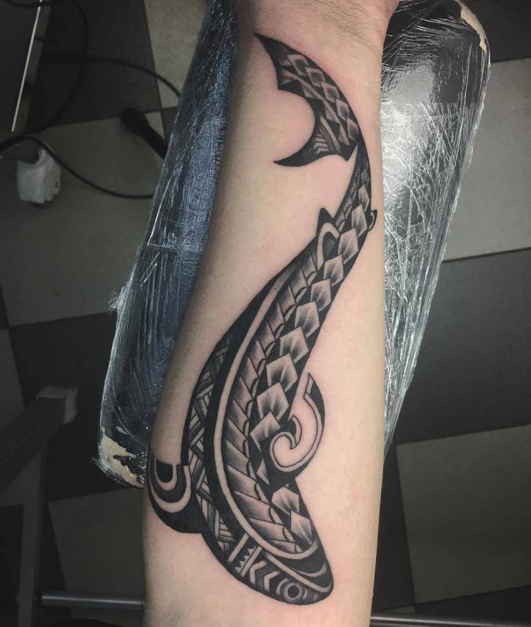 Известная во всем мире хищница воспринималась полинезийцами не как враг а сильный защитник и покровитель, способный поделиться своими чертами. Тату акулы в полинезийском стиле это олицетворения властности и решимости, мужественности и неколебимости, а еще, согласно поверьям, такое изображение может защитить от магического влияния.