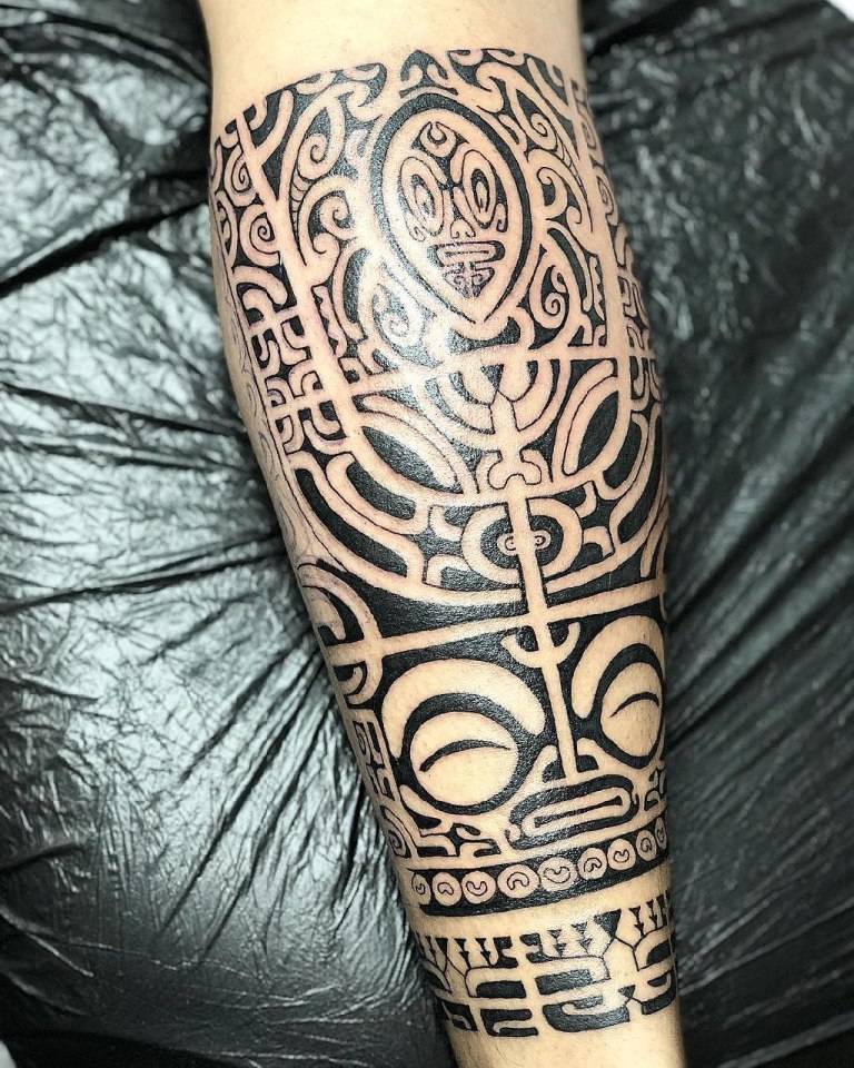 На родине маори жрецы с помощью таких грамот устанавливали связь между преданными членами племени и высшими силами, управляющими природой и жизнью людей. Нательная роспись, возникшая на основе древней религии, имеет свою трактовку каждого треугольника или изображения животного. В больших композициях, часто занимающих все бедро или середину спины, символы встречаются в нескольких вариациях. Круг, разделенный на 4 части света, представляет собой изображение компаса. Из спиралей и кругов на груди или плече вдруг возникает лицо с широко раскрытыми глазами. Каждый маленький элемент участвует в создании отличного образа.