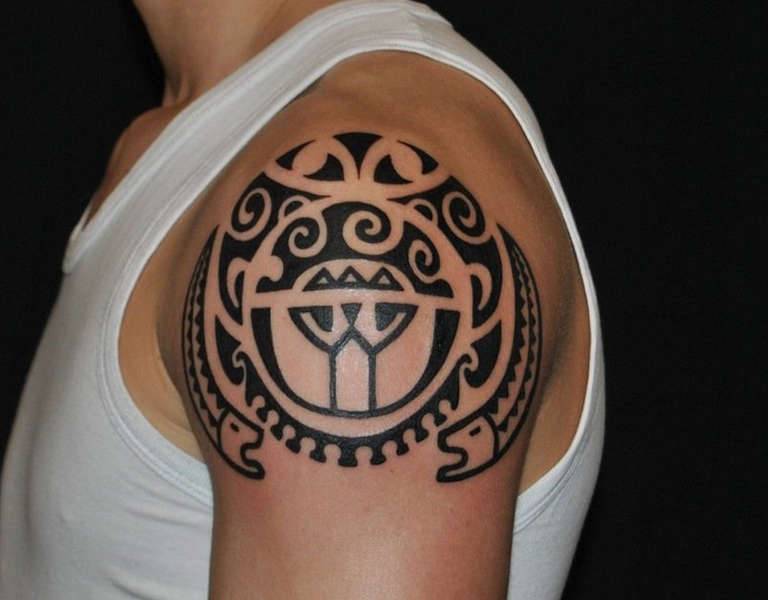 Полинезийская татуировка на плече