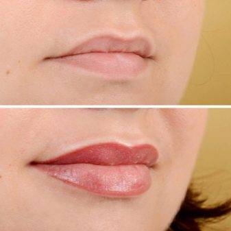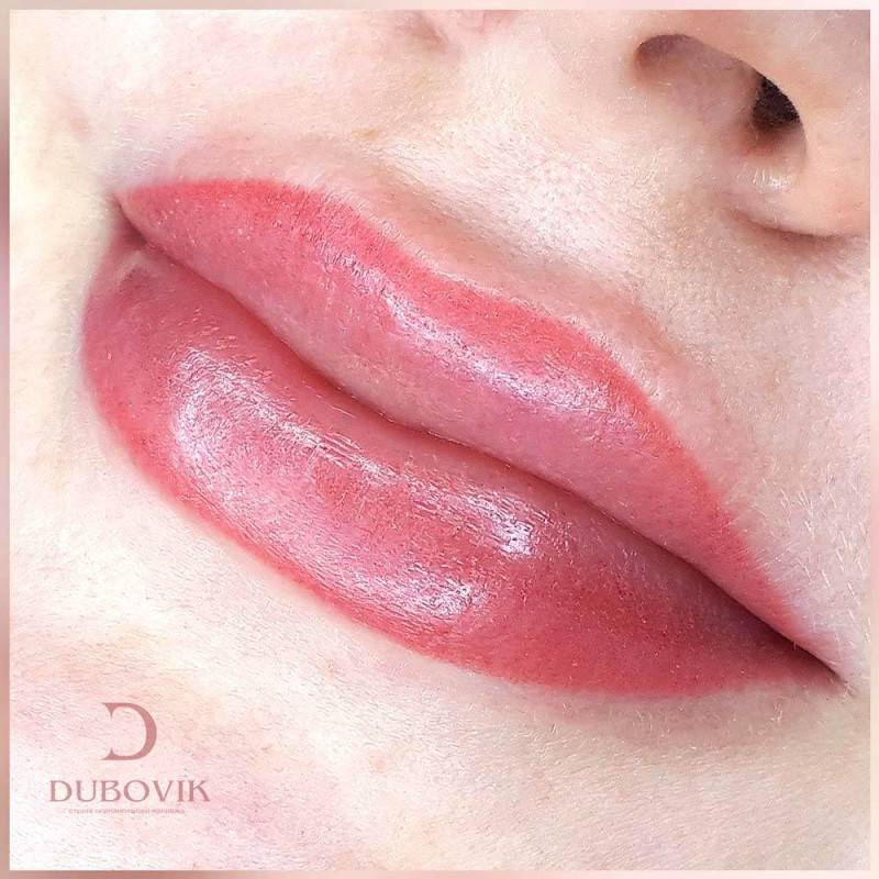 Пигмент наносят в два или три слоя. Делается это потому, что его ввод под кожу делается не слишком глубоко. В итоге губы получаются свежими и глянцевыми, этот эффект делает их пухлыми.
