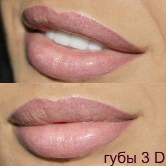 Татуаж губ 3 д подходит тем, кто хочет визуально сделать губы более пухлыми и выразительными, чем натуральные. Используются как минимум три оттенка основного цвета, желательно, чтобы основной цвет не отличался от натурального.
