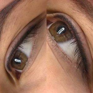 Мастер заполняет пространство между волосками на глазах, вводя под кожу пигмент. После такой процедуры можно несколько лет не использовать туш и подводку для ресниц.