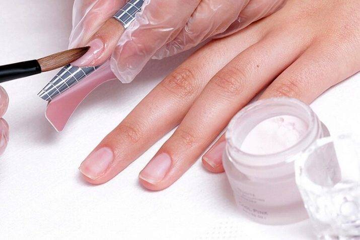 - использование полимерных материалов позволяет увеличивать длину натурального ногтя, значительно укрепляя саму ногтевую пластину;