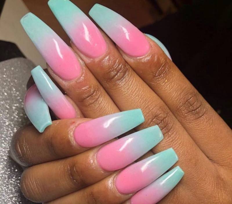 Градиент на длинных ногтях выглядит великолепно. На максимальной длине можно показать все преимущества такого маникюра, топовые варианты дизайна.