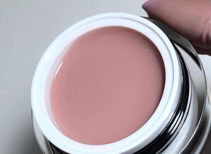 - Камуфлирующий гель моделирует форму ногтевой пластины. Он не такой плотный, имеет нежно розовый оттенок.
