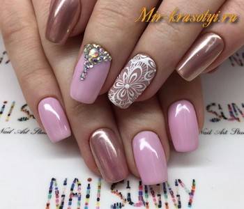 Розовый любят многие модницы. Но не стоит забывать, что этот цвет обладает богатой палитрой — от практически прозрачного до яркой фуксии. Нанести пигмент можно на любую основу. Но максимально эффектно с втиркой смотрятся нежные розовые ногти.