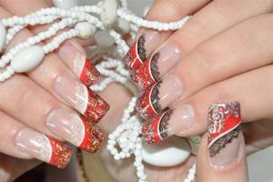 Красный лак — страстный и самодостаточный. Но иногда хочется дополнить такой маникюр небольшой изюминкой. ею может стать надпись. если хотите сделать ее максимально заметной, наносить поверх основного покрытия, а для букв выбирайте контрастный оттенок.