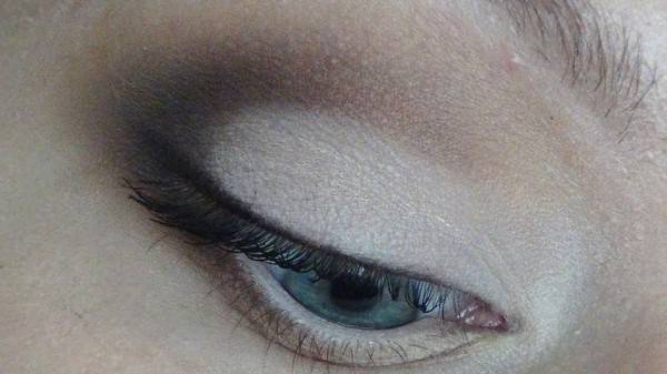 - для начала требуется накрасить натуральные бежевые матовые средства на все большое веко и зону под бровью как основу;