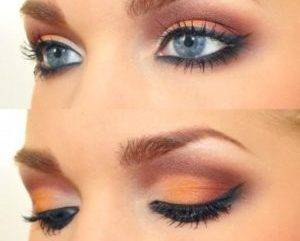 - требуется аккуратно накрасить теплые коричневые тени рыжего или золотистого оттенка на наружную третью часть большого века;