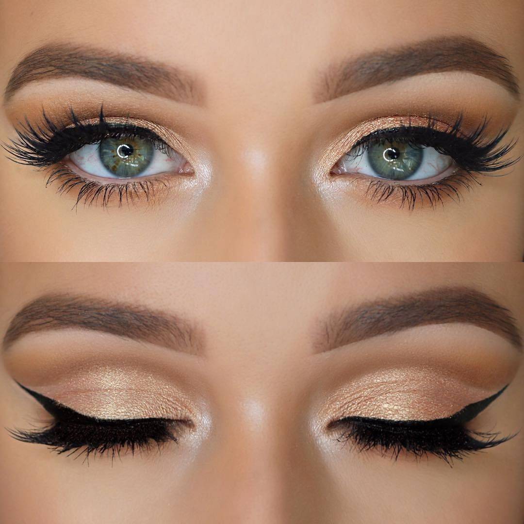 - слегка покрываем зону под бровью золотыми перламутровыми тенями;