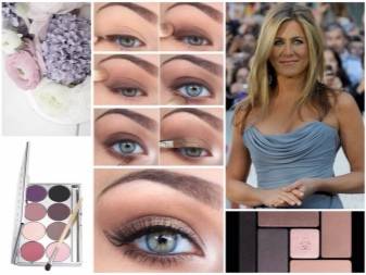 - Для женщин с голубыми глазами лучше всего подойдут сиреневые или пастельно-голубые тени и серый тон карандаша.