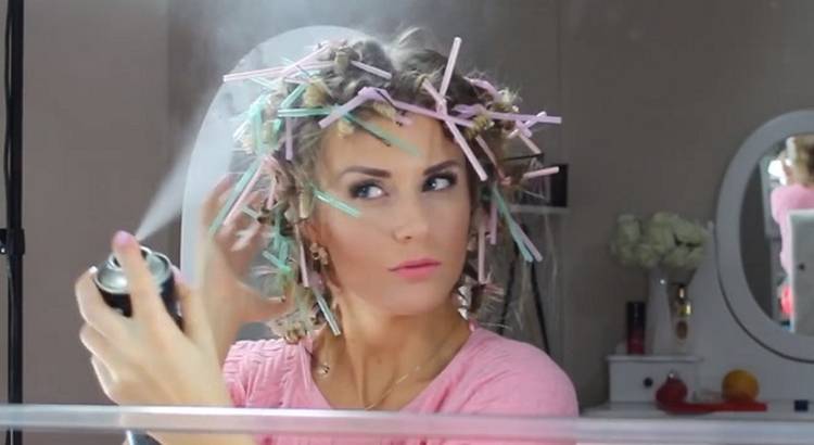Держим термобигуди 15-20 минут и снимаем. Волосы встряхиваем и расправляем рукой. Закрепляем полученный результат лаком для волос. Распыляем его на волосы на расстоянии от 30 см или используем специальный мусс для укладки.