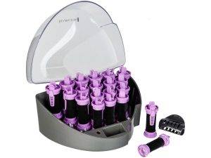 В наборе также имеется контейнер, 20 термобигудей, зажимы. Преимущество модели – наличие функций ионизации и терморегуляции. Покрытие тефлоновое.
