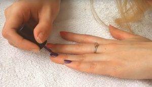 Затем нужно обезжирить ногтевую пластину. Для этого лучше использовать безворсовые салфетки, в таком случае никакая ворсинка не останется прилипшей намертво к ногтю