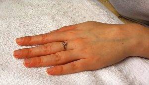 - при контакте с холодной или горячей водой;