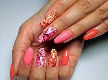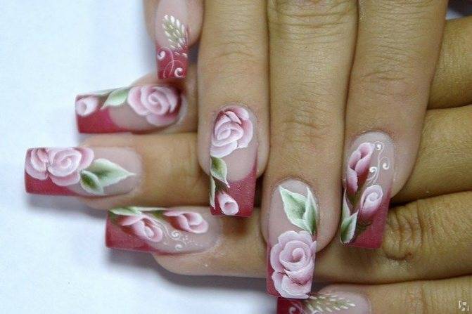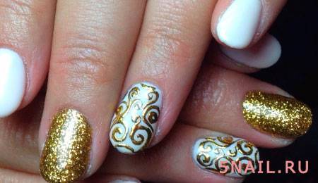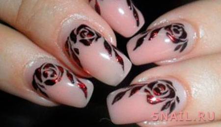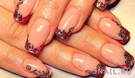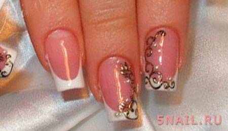 Вид этого маникюра поистине восхитителен: по своей красоте его можно сравнить с росписью профессионального учителя. Всего за полчаса создается такой дизайн ногтей, а если украшать отдельные ногтевые пластины — еще меньше.