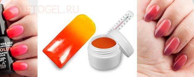 Термогель является специальным материалом, которым выполняется наращивание ногтей или покрытие пластины. В результате чего получается маникюр, меняющийся в зависимости от окружающей его температуры. Термогель – это тот же самый шеллак, но он может быть использован для полноценного наращивания.