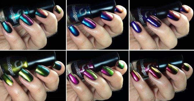 Фото переливающегося маникюра с лаком-хамелеоном.