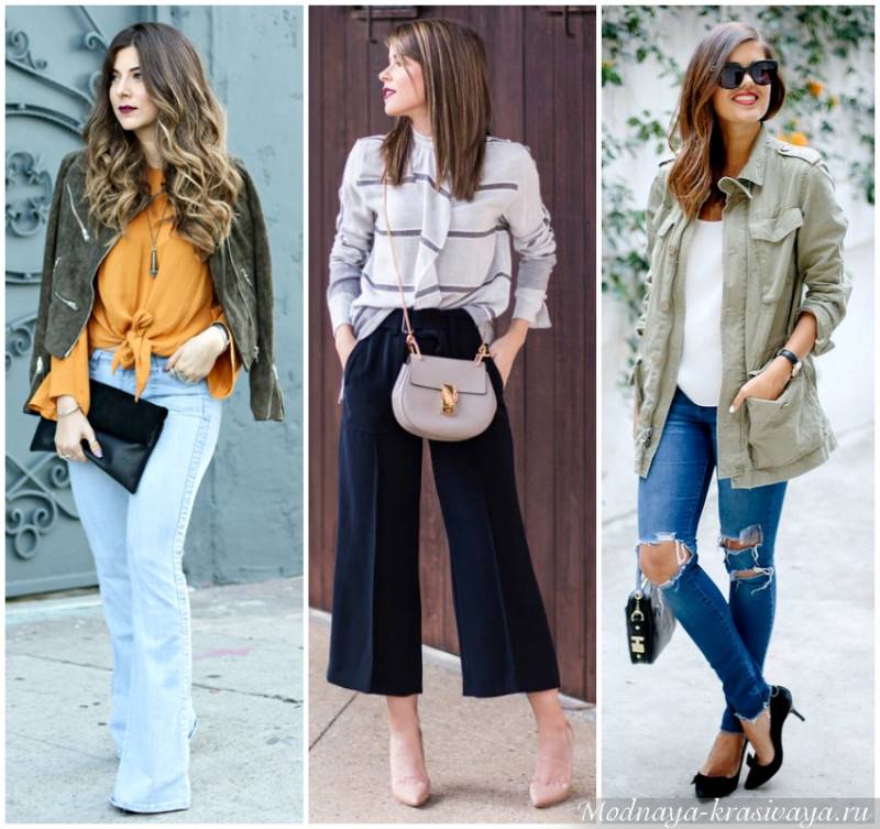 Это коварная одежда для представительниц женственного типа. Брюки лучше выбирать со средней посадкой. Слишком низкая и классическая высокая – сделают бедра еще крупнее. Исключение составляют брюки-палаццо с завышенной талией. Эта модель предпочтительнее для стройных девушек. Но в любом случае брюки не должны быть слишком узкими в нижней части ног.