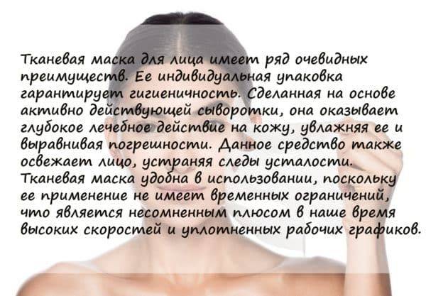 По сравнению с косметическими составами, предлагаемые в виде густой субстанции, и которые нужно наносить на лицо пальцами или шпателем, тканевые маски обладают рядом преимуществ: