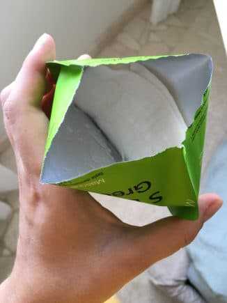 - упаковка вскрывается по промышленно надрезанному шву. Упаковку следует держать прямо, чтобы не разбрызгать жидкость из пакета.