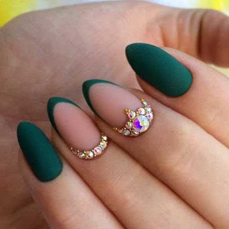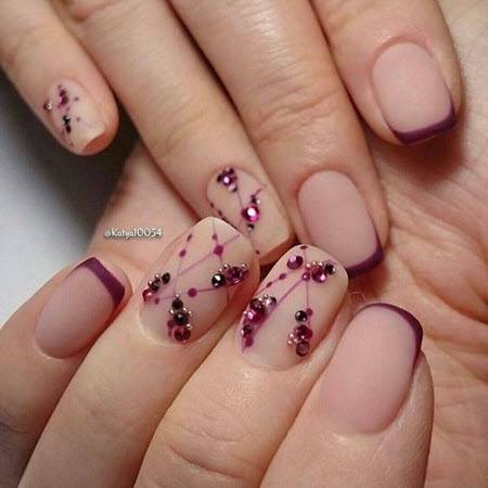 Шикарно смотрится маникюр с камнями только в матовом исполнении, такой дизайн никого не оставит равнодушным. Осенью сезона маникюра 2021 камни и кристаллы наносятся на ногтевую пластину в виде красивого рисунка на одном-двух пальцах, либо в виде мелких камешков на всей ногтевой пластине, также как акцент. Идеи для вдохновения представлены на фото ниже: