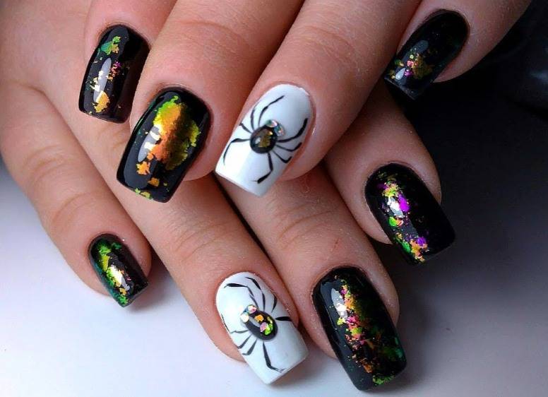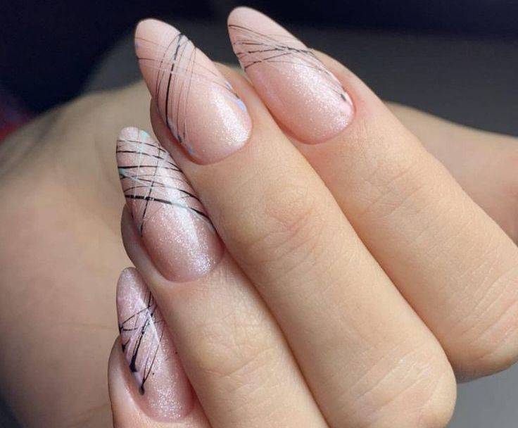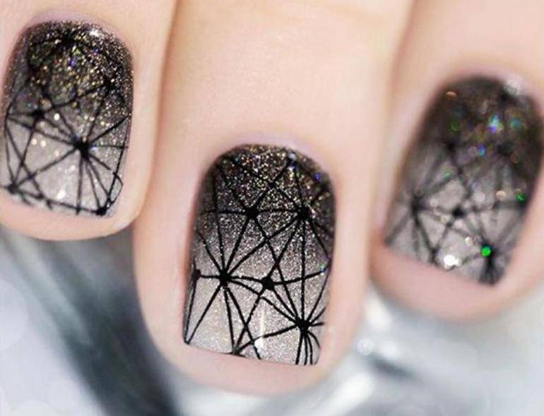 Ноготь-паук очень красиво и интересно смотрится на ногтях любой длины. Это могут быть хаотичные переплетения или четкие геометрические линии и узоры.