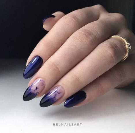 Осенью 2021 года маникюр можно дополнить поролоновым дизайном ногтей в лучших цветах сезона: бордовом, синем, черном и фиолетовом.