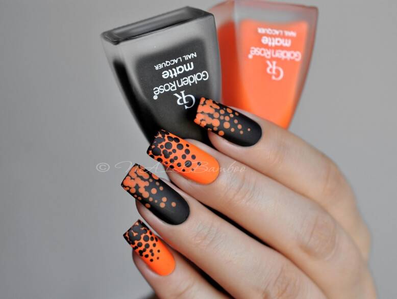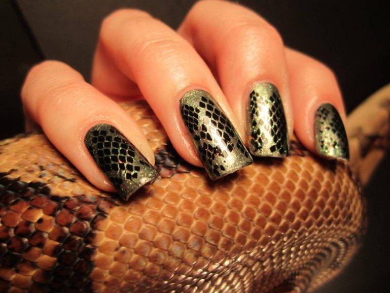 Черный цвет лака оптимален для рисунка флористического, геометрического, анималистического типа. Такой рисунок может быть нанесён трафаретом, наклейками, стемпингом или кисточкой.