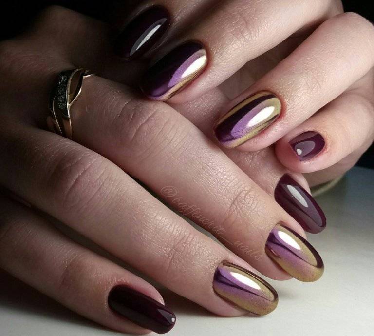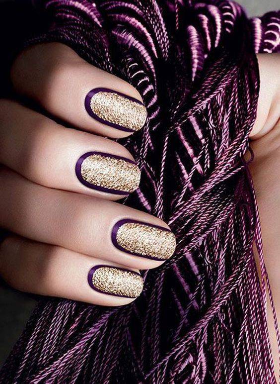 В любой из темных оттенков вы можете добавить немного мерцающего золота и маникюр заиграет совсем по другому.
