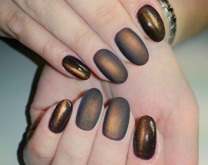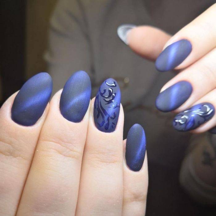 Матовый маникюр превосходно смотрится в палитре глубоких темных оттенков, его можно комбинировать с разными вариациями декора и дизайна, сочетая даже несколько оттенков лака, и к тому же матовый маникюр безупречен на любой форме ноготков. И так, в 2020 году в моде не только матовые тени для век, матовая помада, матовый румянец, а и лак для ногтей занимает свое почетное место.