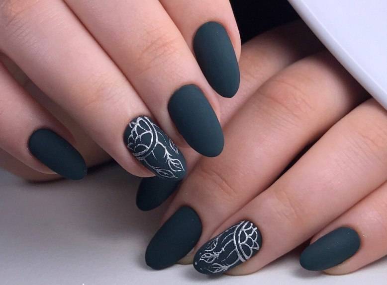 Актуальная палитра сезона позволит создавать превосходный маникюр с матовым покрытием. Черный, фиолетовый, красный, винный, темный синий, зеленый и другие темные и насыщенные оттенки – классика матового нейл-дизайна, особенно в однотонном исполнении.