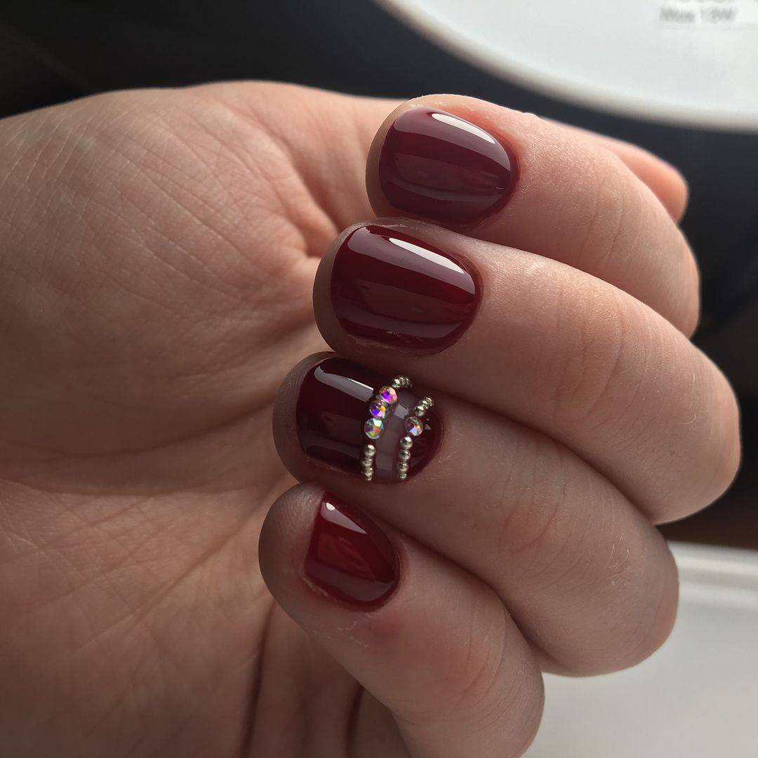 В осенне-зимнем сезоне незаменимыми становятся темные, глубокие оттенки лака. В данном случае речь идет о малиновом, красновато-коричневом оттенке, а также бургунд и бордо. Каждый из них выглядит благородно, изысканно. Такое покрытие уместно не только для вечернего выхода, но и прекрасно дополняет деловой образ. Буквально все говорит о его универсальности.