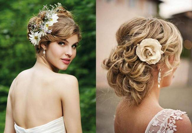 - Она должна соответствовать месту проведения свадьбы и её формату. Если это пышное празднование в шикарном ресторане, подойдут сложные и изысканные причёски. Если это торжество в стиле рустик, то будут уместны локоны или косы. Если же свадьбу отмечают в стиле ретро, то и причёски должны быть из шестидесятых годов прошлого века.