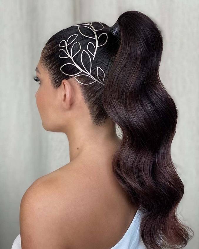Волосы гладко или с легким приданием объема зачесываются назад и собираются в хвост. Это не новая, но от этого не менее актуальная прическа. Хвост должен быть тугим.