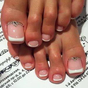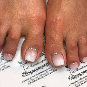 Аккуратные гладкие ножки должны быть всегда – это признак ухоженности. Пусть на свадьбе стараний мастера никто не увидит, но после, когда вы будете наедине с мужчиной, это станет для него ещё одним напоминанием, какая вы у него превосходная жена. Покрытие ноготков может быть созвучно с маникюром – нежные оттенки + капелька страз и вуаля – вы самая неотразимая!