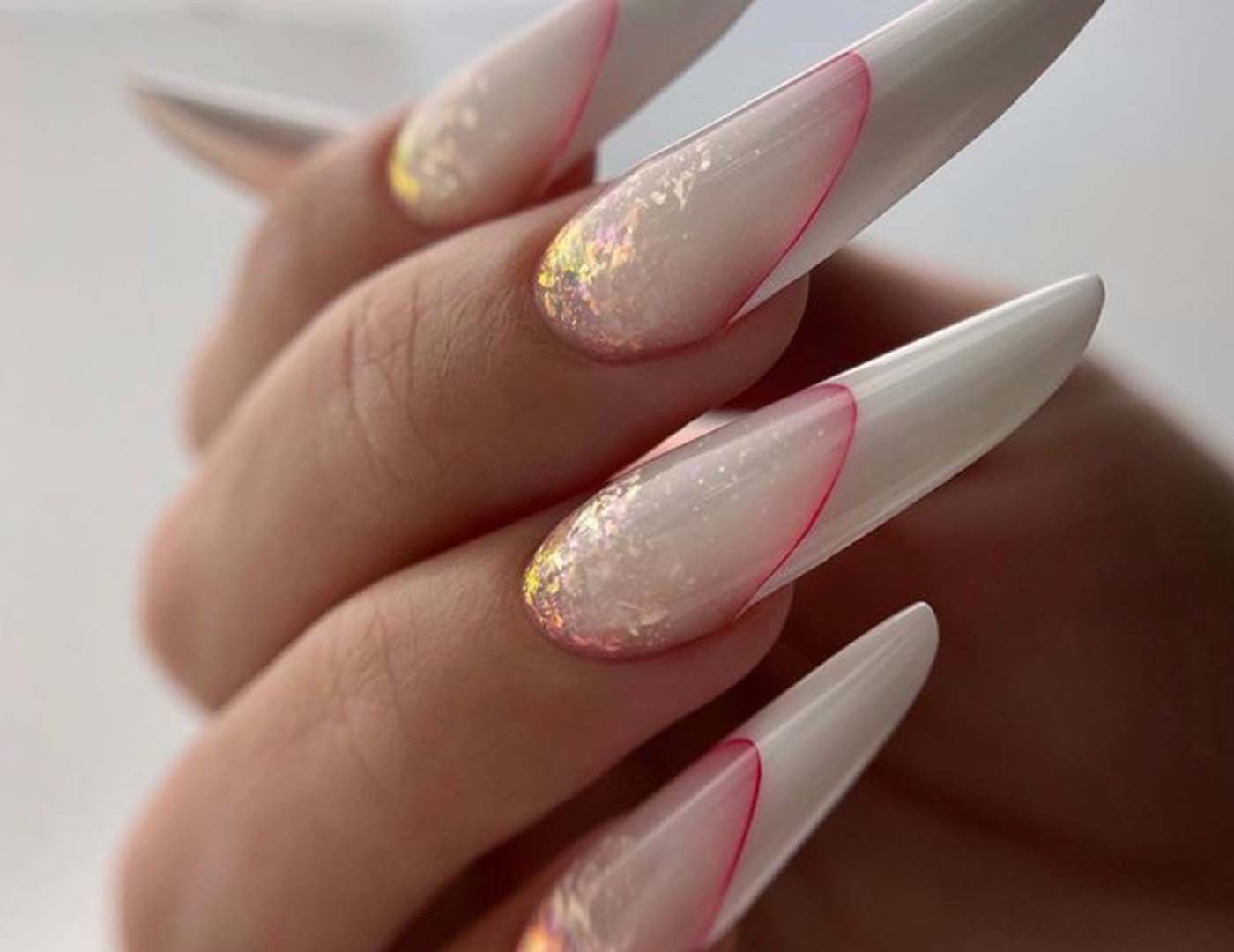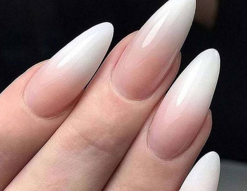 - Форма «стилеты» – длинные острые ногти. Свадебный французский маникюр на форме «стилет» подойдет для экстравагантных и неординарных личностей. Но такой вариант давно и надолго вышел из моды, как и «балерина».