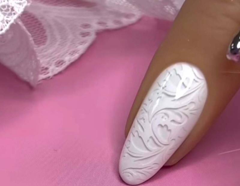 - Если на какой-то детали свадебного образа нанесен какой-то характерный узор, можно попросить мастера повторить его на ногтях.
