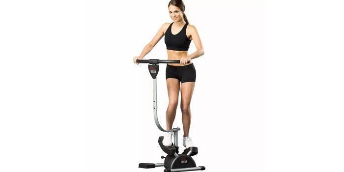 Прибор, длиной 42 см, шириной 32 см и высотой 20 см, весит 8 кг. Он выполнен в серебристо-черных тонах. Эффективной проработке ягодиц и ног способствует равномерное движение педалей. За формирование рельефа рук и спины отвечают эластичные эспандеры. Максимальная безопасность занятий — заслуга взаимозависимых педалей с противоскользящим слоем.