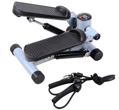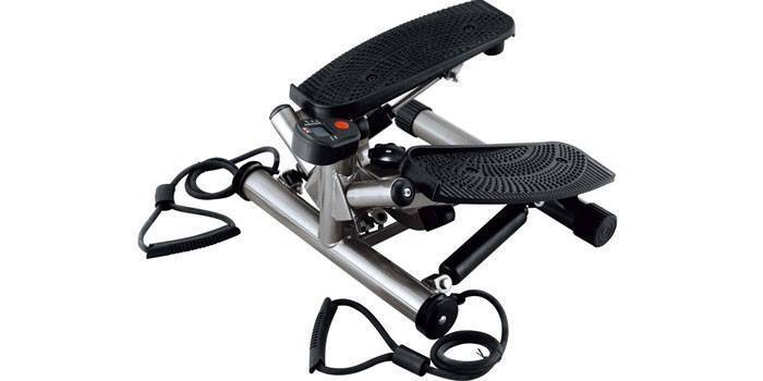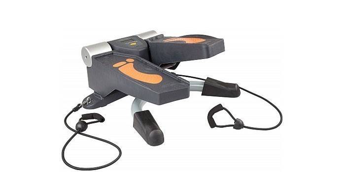 Еще один мини-степпер с эспандером – HouseFit HS-5015. Этот тренажер для ходьбы имеет консоль, на которой отображается время тренировки, количество шагов в минуту и расход калорий. Хорошо подходит для домашнего использования: