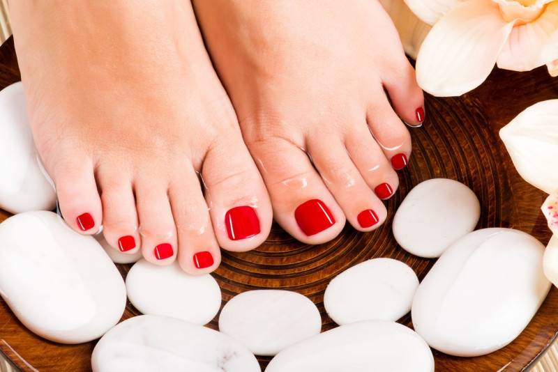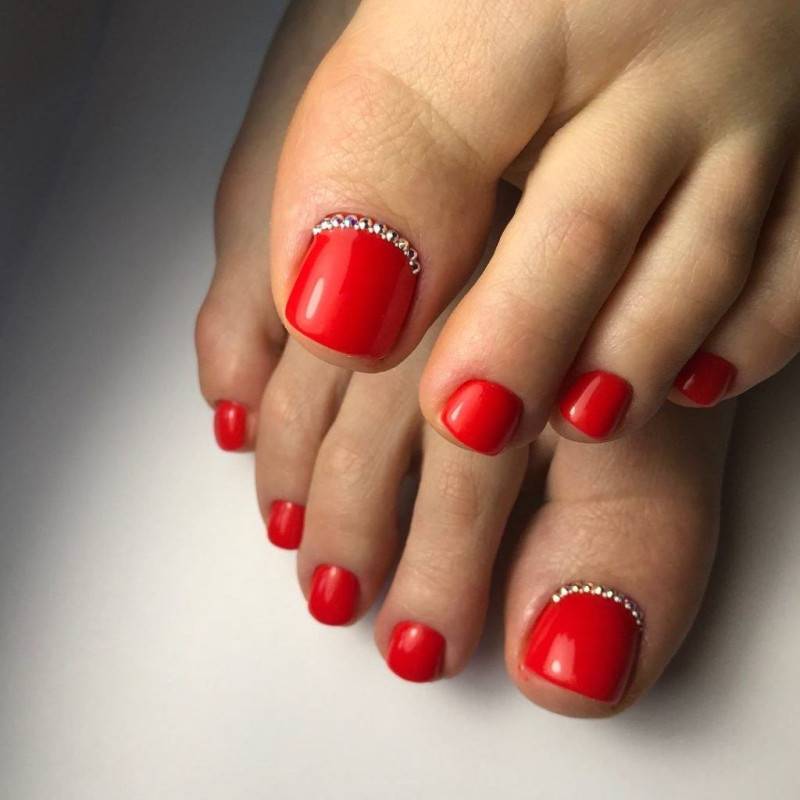 Классический цвет тот, который всегда выглядит хорошо. Также подчеркивает загар и украшает более светлую кожу. Кто может устоять перед темно-красным в хорошем педикюре?