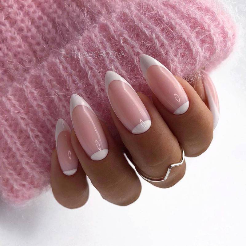 А еще лунный маникюр отлично смотрится вместе с френчем, и это сочетание также комбинируется как на руках, так и на ногах!