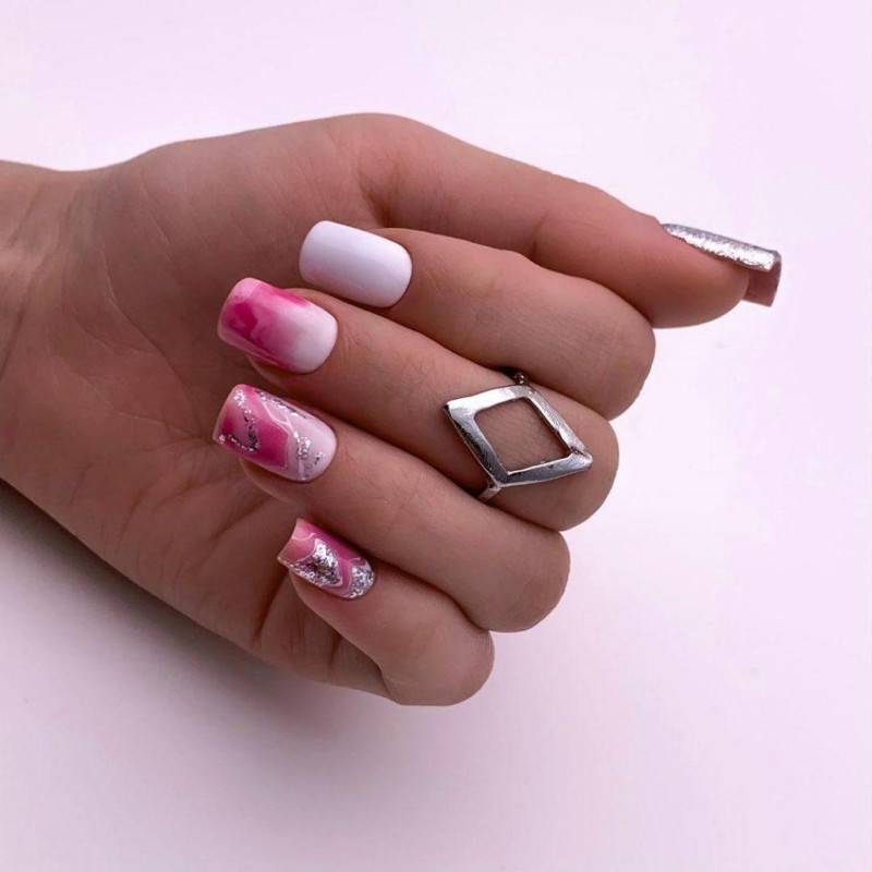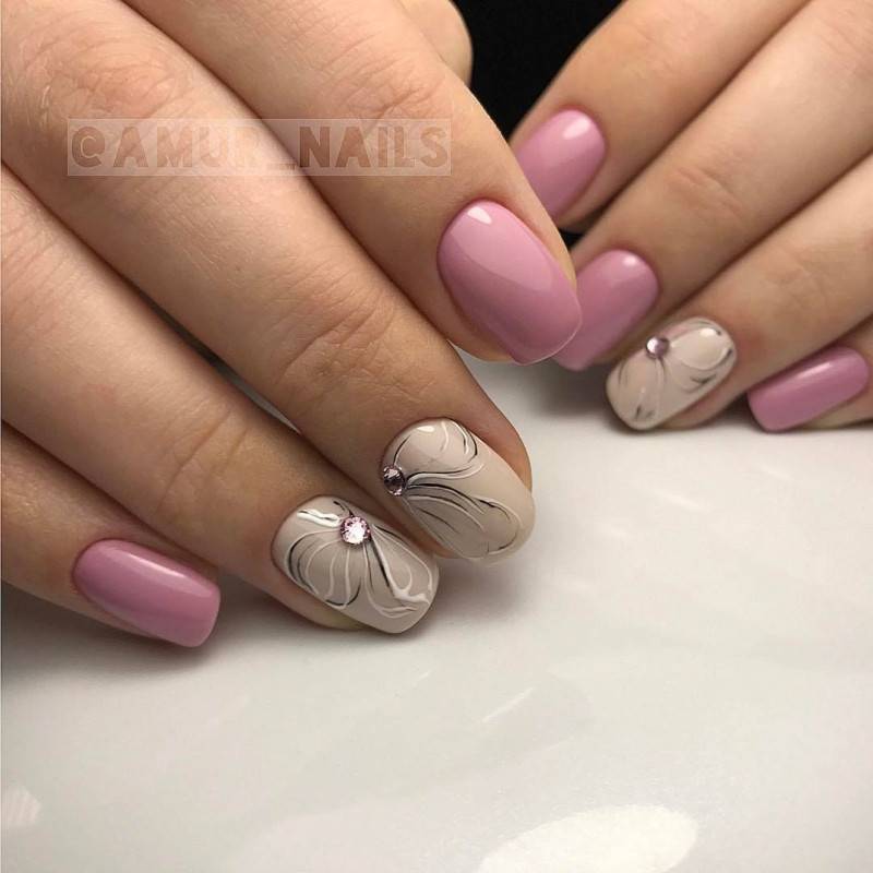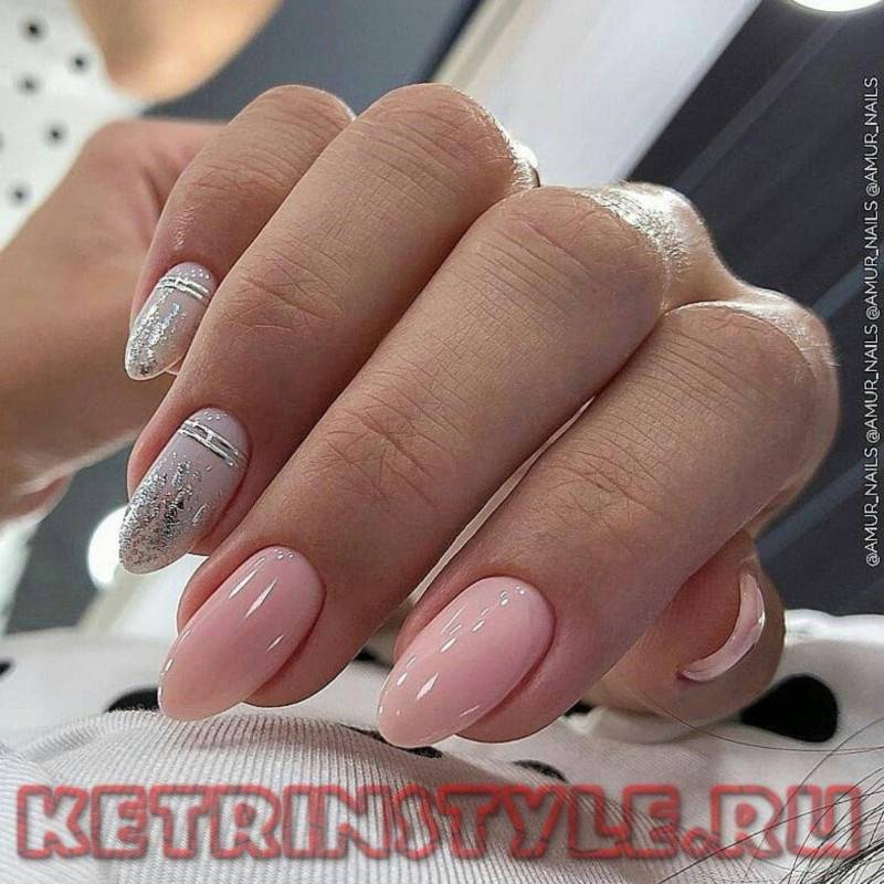 - розовый – выглядит ярче и нежнее, чем серый маникюр. Может быть использован вместе с золотым или серебряным глиттером.