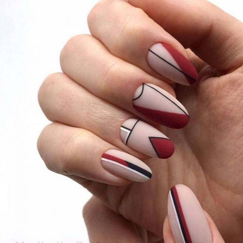 Красивый маникюр и педикюр в разных оттенках может сочетать в себе прорисованные углубления, технику французского нейл-арта, омбре, а также повторяющийся рисунок, геометрические узоры, полоски, горошек.