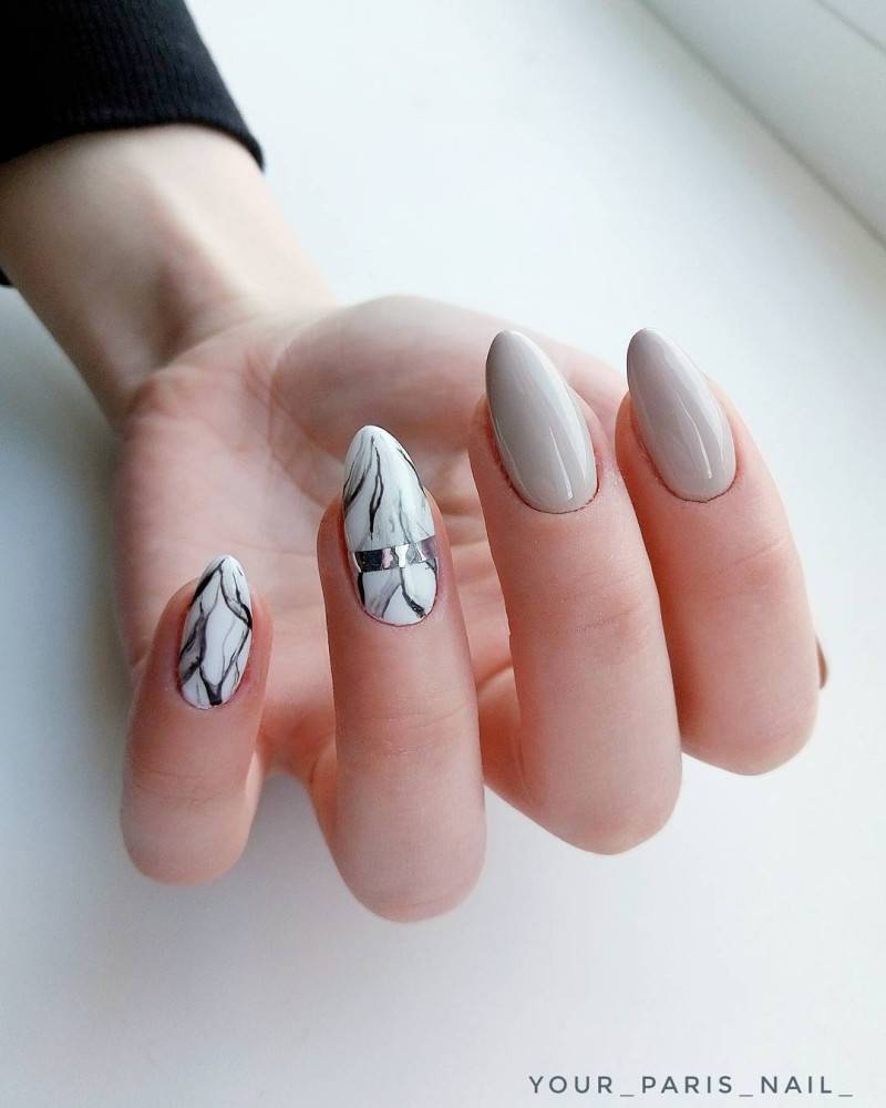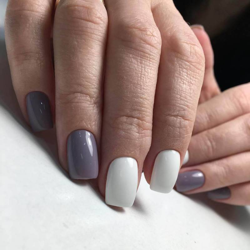 - серый – классический вариант для мраморного маникюра, который отлично впишется в ваш офисный стиль