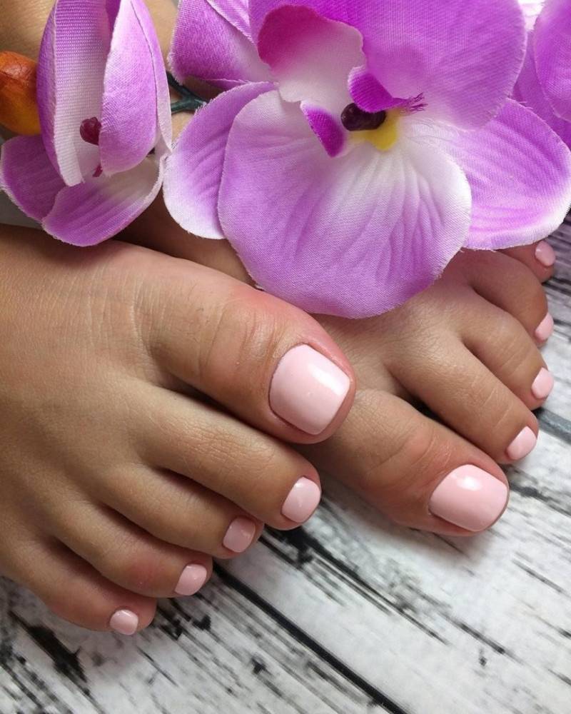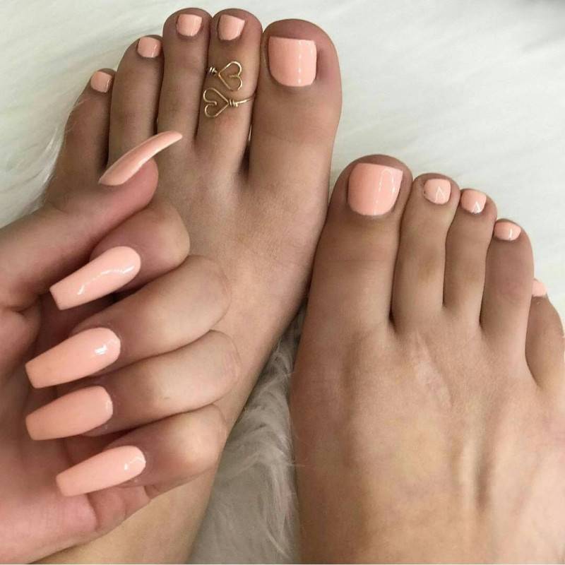Прежде всего – это просто одинаковый цвет лака или гель-лака, которым можно покрыть как ногти на руках, так и на ногах. Можно использовать матовый топ, чтобы разнообразить эффект.