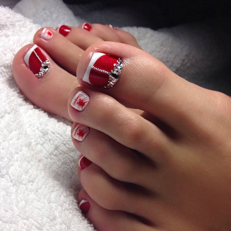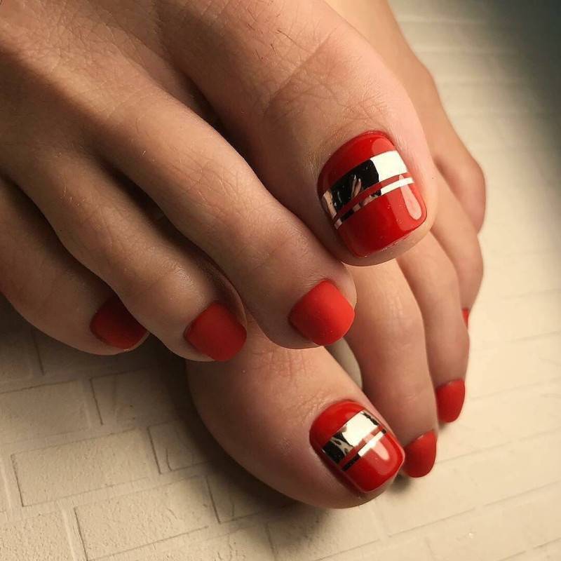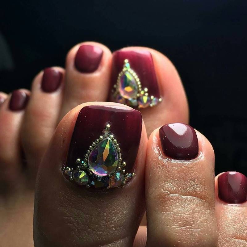 Педикюр в темно-красных и бордовых тонах — вариант, который НИКОГДА не подводит, поэтому, если сомневаетесь, идите по этому пути.